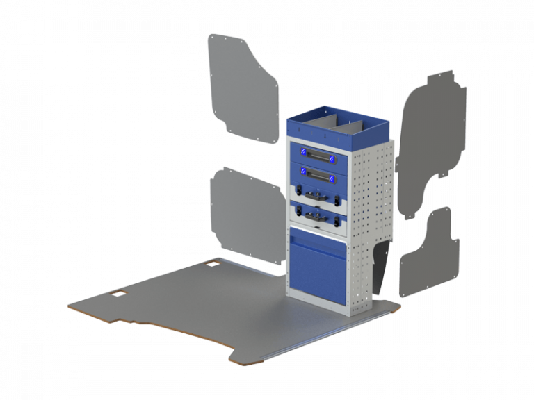 Jedes Regalsystem für Transporter wird mit Befestigungswinkeln und Befestigungselementen vervollständigt. Die Regale sind aus Stahl und weisen einen hohen Widerstand auf. Die Einlegebretter und Schubladen haben verstellbare Regaltrenner und rutschfeste Matten. Die praktischen, herausziehbaren Werkzeugkoffer sind mit kleinen Fächern ausgestattet und somit die ideale Lösung für die Aufbewahrung und den Transport von Kleinteilen.